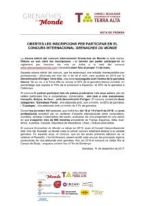 NdP_Obertes les inscripcions per participar en el concurs internacional Grenaches du Monde
